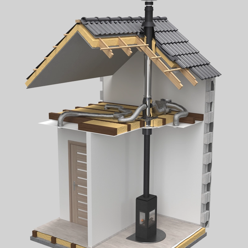 • Montaż elektrycznego wyciągu może być wykonywany na kominie stalowym (specjalne przejście) oraz kominie tradycyjnym.