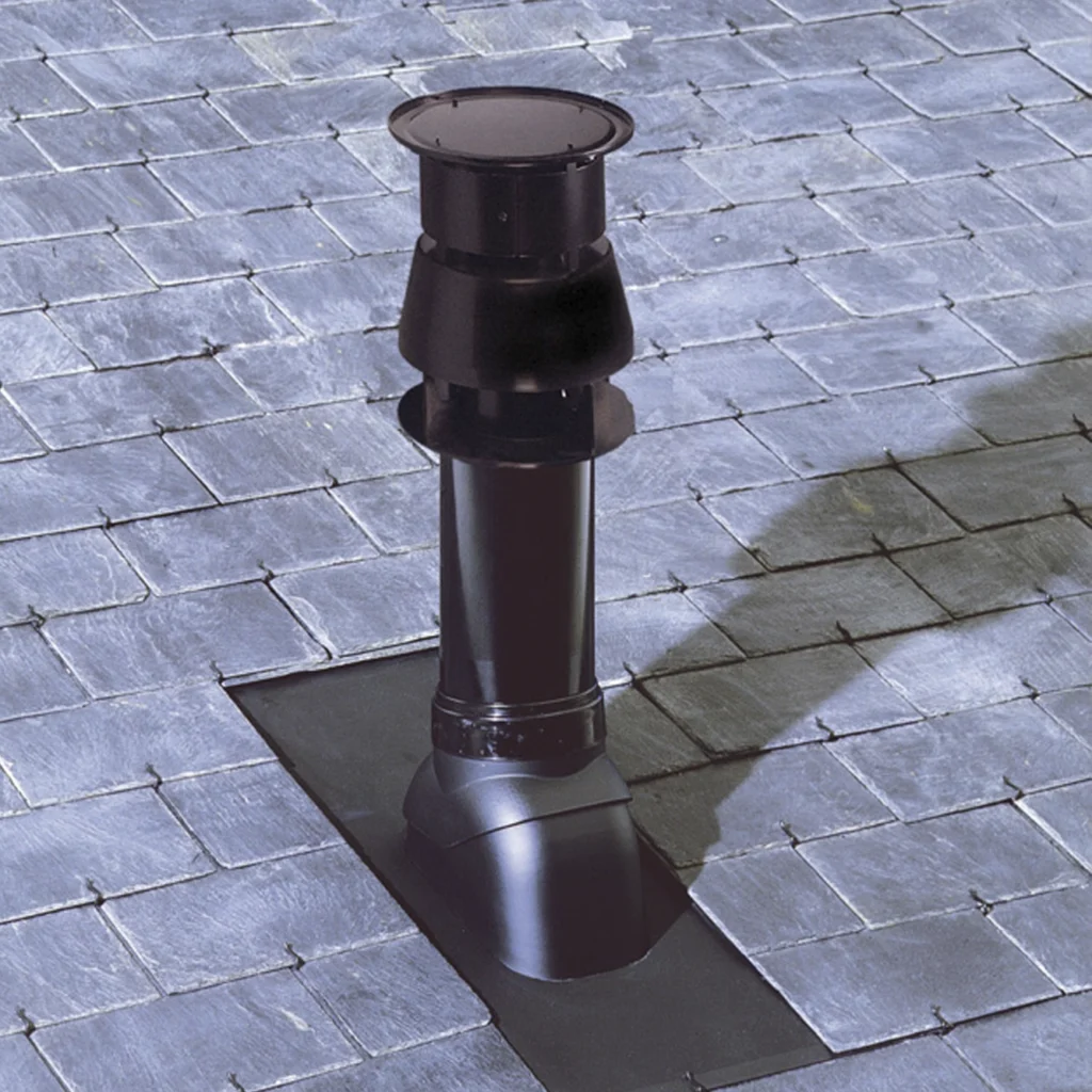 Koncentryczny system kominowy do pieców kominkowych zasilanych peletem.