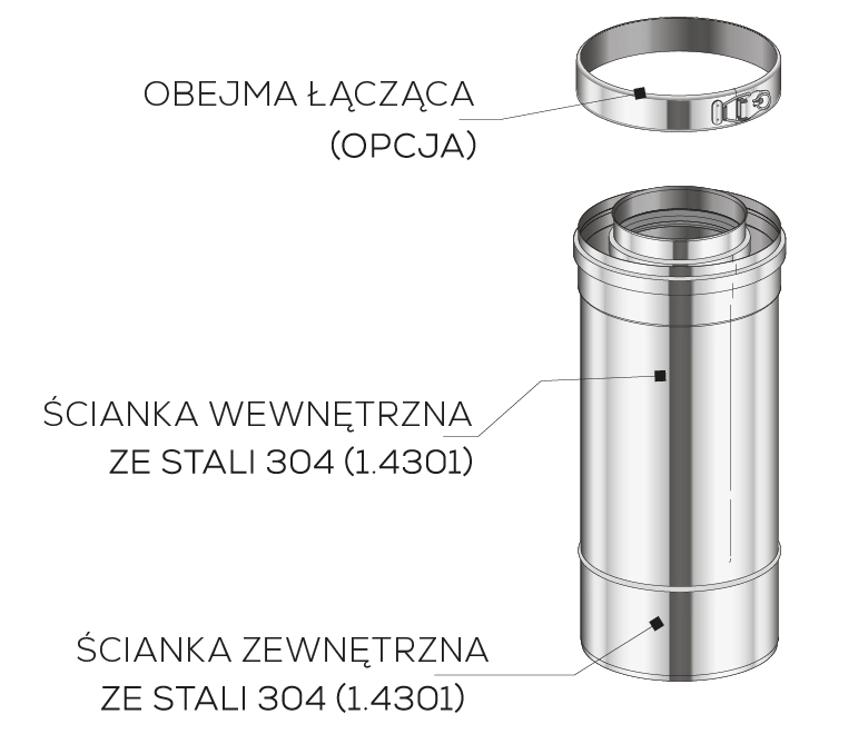 (stal austenityczna – wysoko polerowana o gatunku 1.4301) - Płaszcz zewnętrzny produkowany ze stali szlachetnej