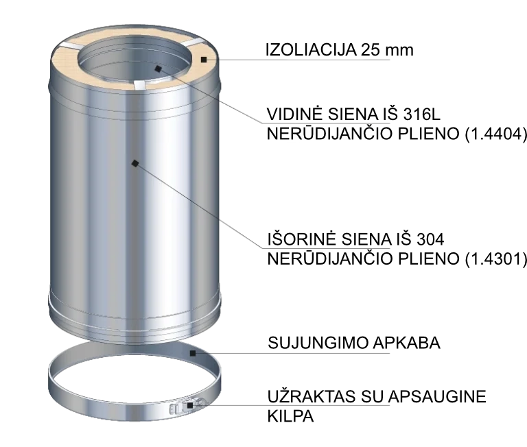 DUALINOX 08 – aukščiausios kokybės, karščiui atsparus izoliuotas kaminas židiniams.