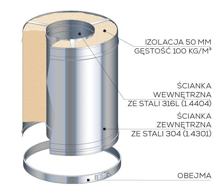 Komin Dualinox 50 zachwyca nowoczesnym designem i wysoką jakością wykonania. Każdy szczegół został zaprojektowany z myślą o estetyce i funkcjonalności, dzięki czemu system harmonijnie komponuje się zarówno z klasyczną, jak i nowoczesną architekturą. Rozwiązanie, które łączy trwałość ze stylowym wyglądem.