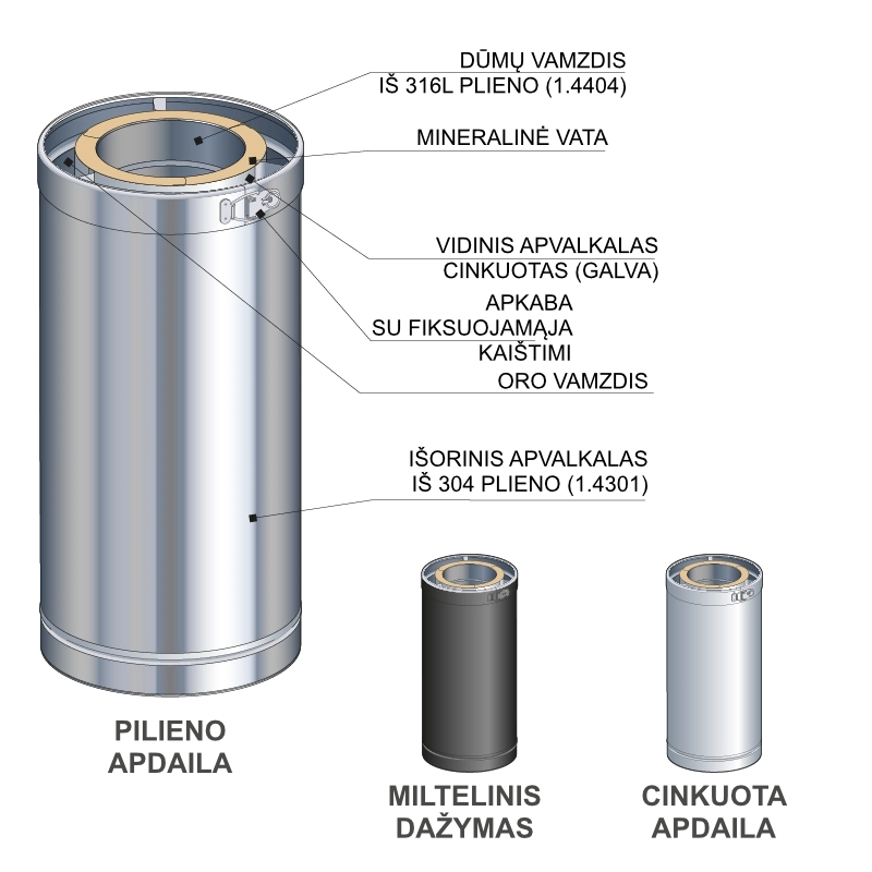 Papildoma mokama parinktis: kamino miltelinis dažymas bet kuria RAL spalva (spalva gali nežymiai skirtis nuo spalvyno).