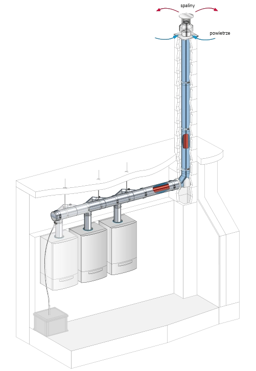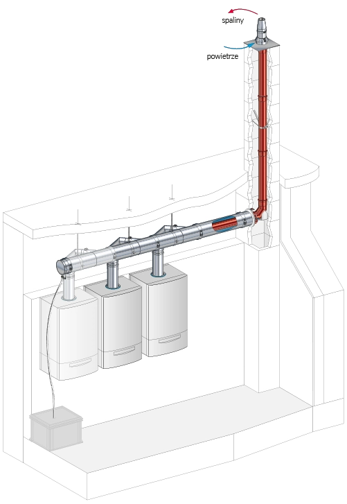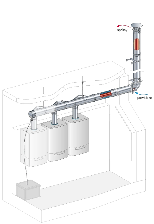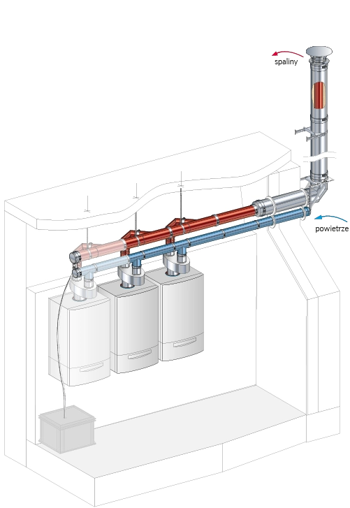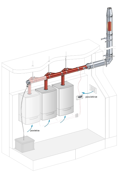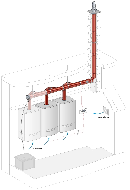 System ewakuacji spalin dla kotłów gazowych połączonych w kaskadę.