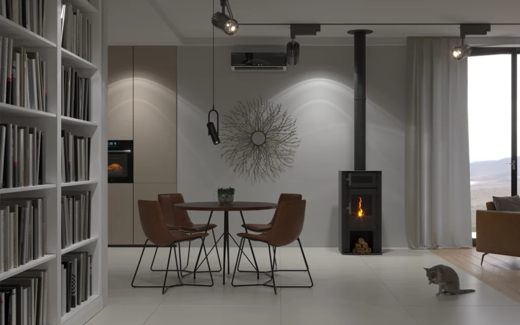 Nieduży piec typu koza jest doskonałym uzupełnieniem pompy ciepła. W szczególnie mroźne zimowe dni pozwoli dogrzać pomieszczenia. Wzrost temperatury w domu sprawi, że trzeba będzie uruchamiać elektrycznych grzałek w pompie, co może oznaczać spore oszczędności.