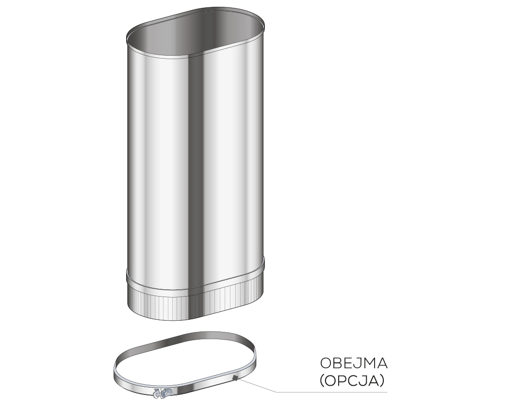 - Elementy systemu zapinane obejmami, co uniemożliwa rozpięcie się instalacji w trakcie pożaru sadzy lub podczas czyszczenia.