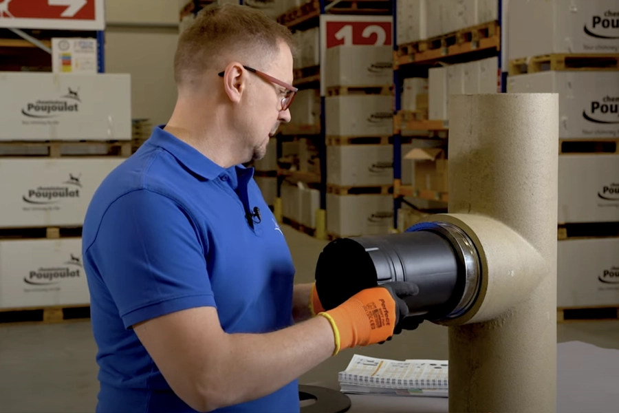 Dedykowane rozwiązanie do przejścia między systemem Poujoulat a tradycyjnym kominem ceramicznym.