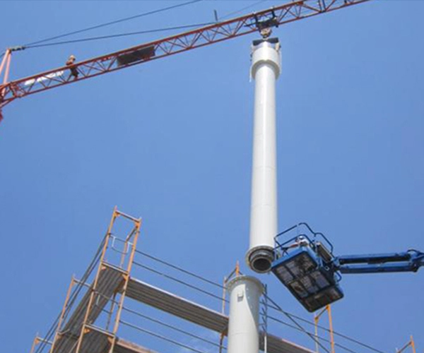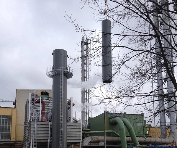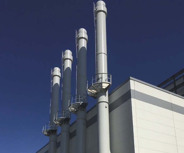 Komin wolnostojący umozliwia odprowadzanie spalin z 3 kotłów równocześnie