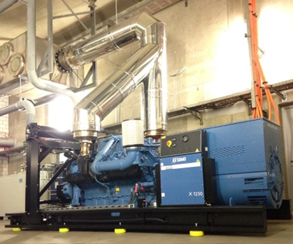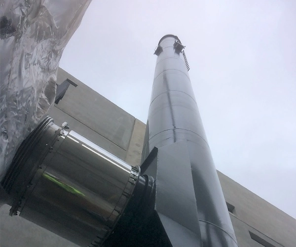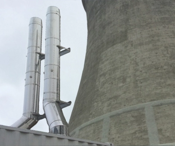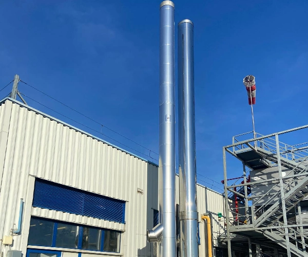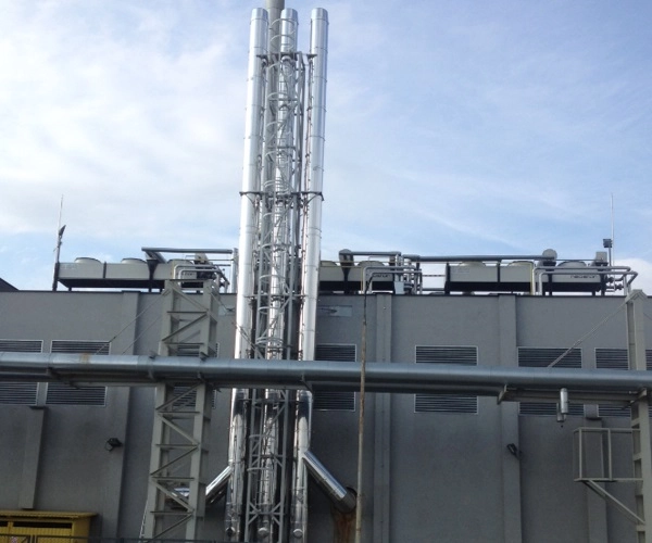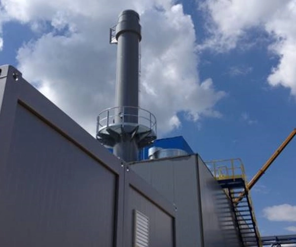 Zapasowy generator prądotwórczy dla spalarni śmieci. Izolowany komin Therm+GEP.