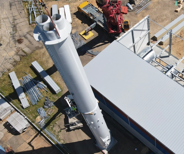 Jeden z najwyższych kominów wolnostojących kiedykolwiek dostarczony przez fabrykę z Esbjerg. Łączna waga komina to 270 ton. Komin był dostarczony w siedmiu sekcjach.