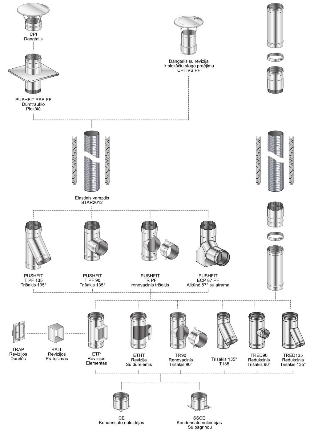 Dūmtraukio sistemos montavimas – tai paprasta procedūra, pagrįsta atskirų dūmtraukio elementų sujungimu.
